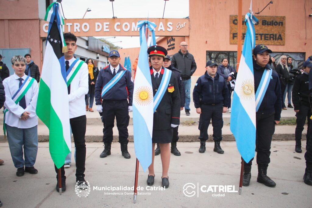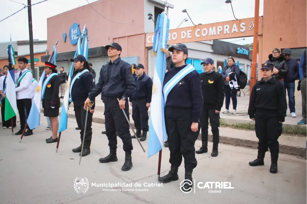 En la ceremonia estuvieron presente, además, la Intendenta Municipal, Daniela Salzotto junto a su Equipo de Gobierno, el Presidente del Concejo Deliberante, Alberto Ariaudo, concejalas y concejales, representantes del Poder Contralor y de Justicia, Fuerzas Vivas, se destacó la presencia de miembros de la Agrupación Veteranos de Malvinas y representantes de Instituciones Educativas.