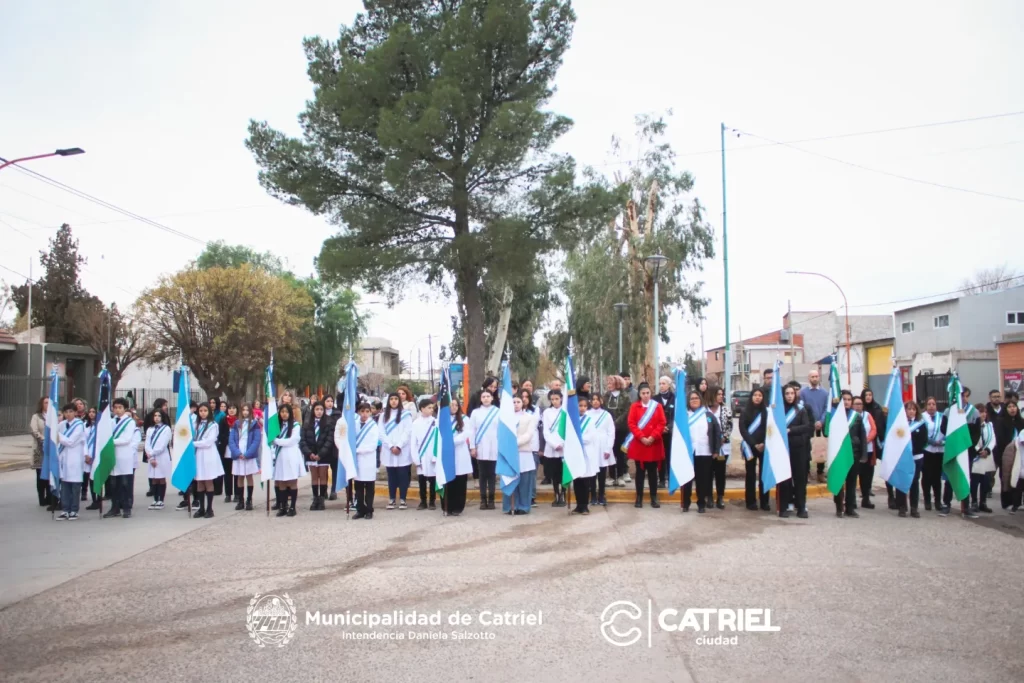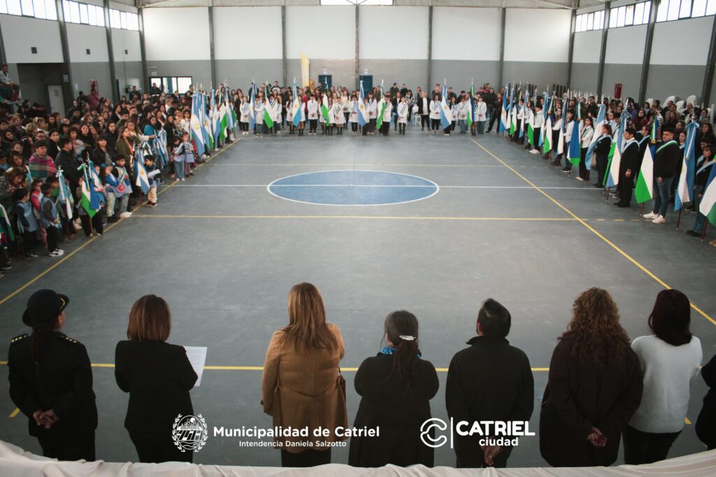 Catriel conmemoró el Día de la Bandera con un acto oficial en el SUM Municipal Eldo Carro, contando con la presencia de instituciones educativas, fuerzas vivas, el Club de Leones y el grupo de scouts. La Intendenta Daniela Salzotto y su equipo de gobierno encabezaron la ceremonia. La Asociación Kawell Anay entregó una bandera traída a caballo.