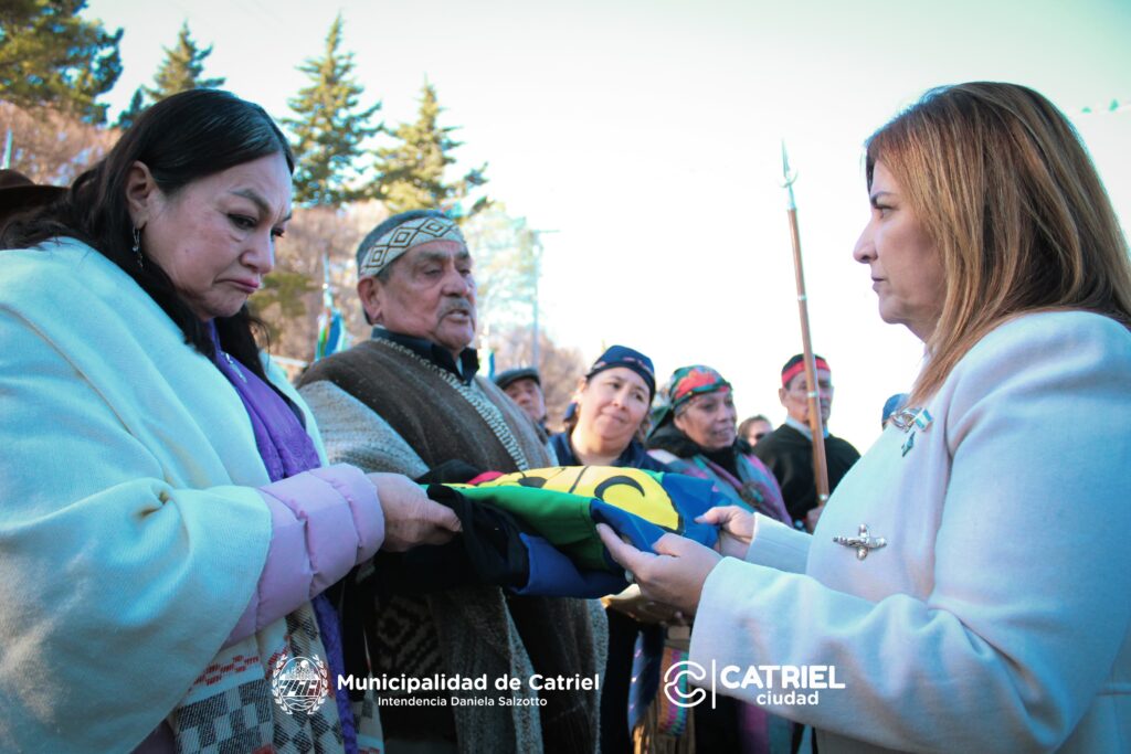 Durante la ceremonia, se realizó la lectura de la Resolución Municipal N° 3038/24, que adhiere a la Ley Provincial N° 2287, conocida como «Ley Integral del Indígena». Esta resolución refuerza nuestro compromiso con la protección y promoción de los derechos de las comunidades indígenas, reconociendo su importancia y contribución a la diversidad cultural de nuestra región. Posteriormente la Intendenta Daniela Salzotto recibio la bandera «Wenofoye» de comunidades de la zona Picunche.