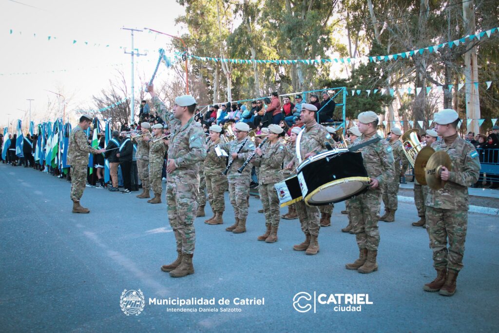 Tras el acto oficial, se dio inicio al desfile, en el cual participaron numerosas Instituciones Educativas, Asociaciones y Empresas locales, demostrando la diversidad y el compromiso de la comunidad de Catriel. El desfile estuvo acompañado por la banda militar del Ejército Argentino que nos brindo su acompañamiento musical durante todo el desarrollo del mismo.