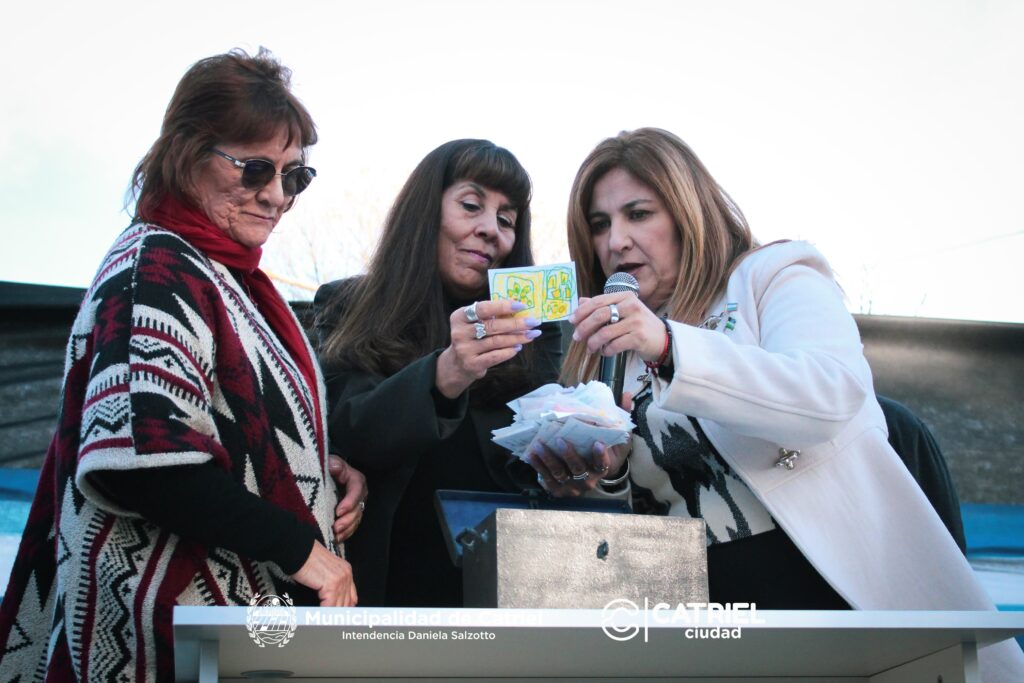 Además, se llevó a cabo la apertura del cofre de los deseos, un acto simbólico que involucró a ex alumnos y docentes del Jardín N°7 Ayen Hue junto a la Intendenta Salzotto y el Gobernador Weretilnek. Se pudo descubrir lo que había adentro (cartas escritas por los alumnos de ese momento)