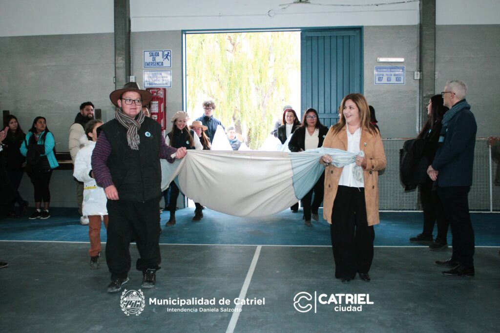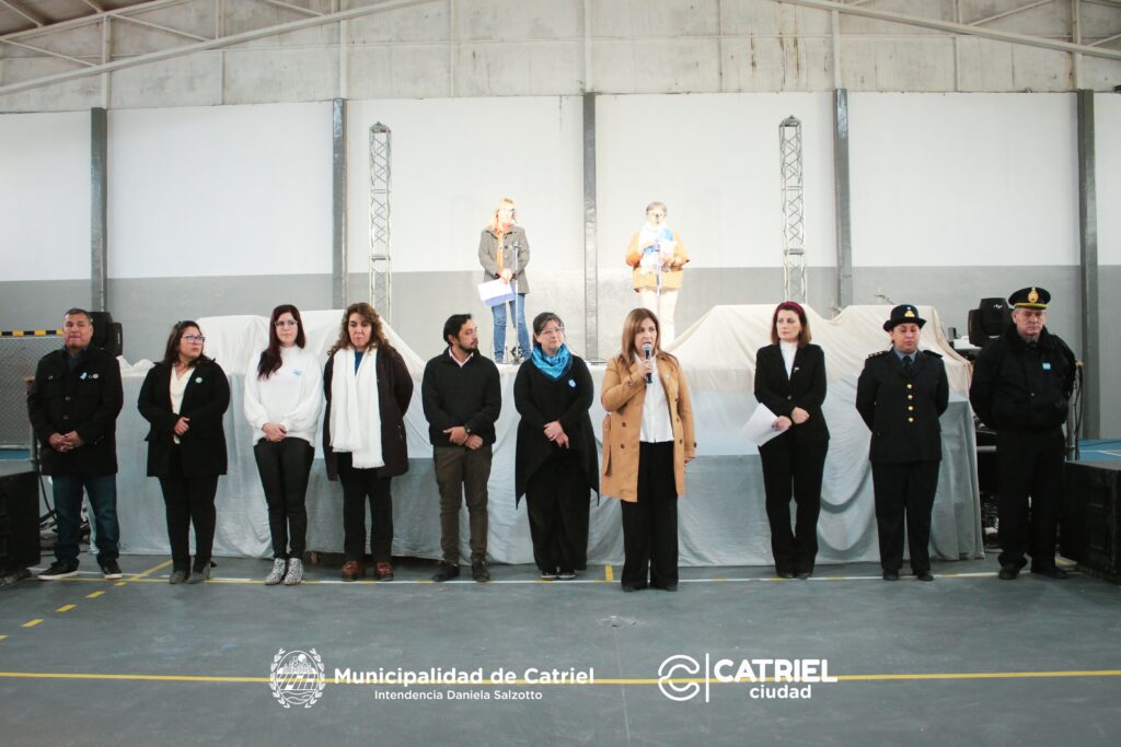 Catriel, 20 de junio de 2024 – En una jornada marcada por el fervor patriótico y la unidad comunitaria, la Municipalidad de Catriel llevó a cabo el acto oficial por el Día de la Bandera en el Salón de Usos Múltiples (SUM) Municipal Eldo Carro. El evento contó con la participación de numerosas instituciones educativas de todos los niveles, así como de representantes de las fuerzas vivas, el Club de Leones y el grupo de scouts locales. La ceremonia fue presidida por la Intendenta Daniela Salzotto, quien estuvo acompañada por su equipo de gobierno. En su discurso, la Intendenta Salzotto destacó la importancia de este día como símbolo de identidad y orgullo nacional, resaltando la necesidad de fortalecer los valores de respeto y solidaridad en la comunidad.