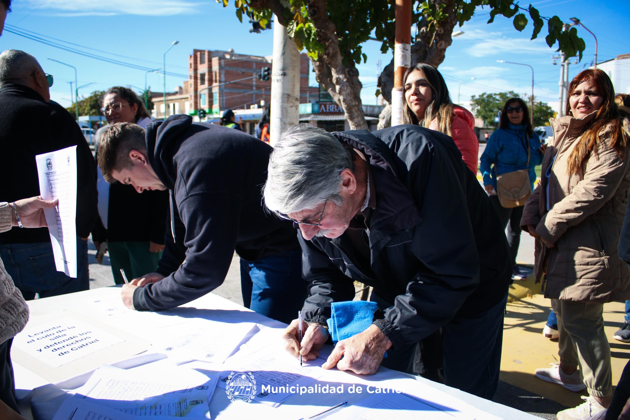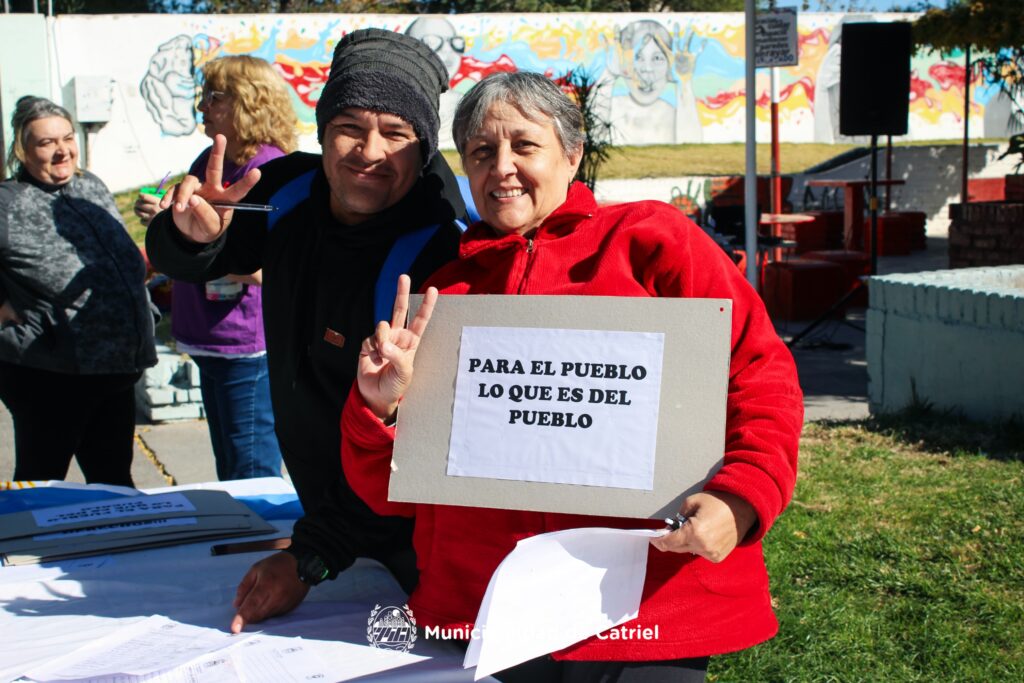 Luego de dos eventos que convocaron a la movilización de vecinos y vecinas de Catriel frente a los reclamos que realizaron sus representantes elegidos y no tenidos en cuenta, nuevamente la mañana del viernes se vio diferente en la Plaza de la Familia, lugar elegido por la comunidad para convocarse. La propuesta de hoy era recabar firmas de todas y todos los catrielenses que avalen y den apoyo al proyecto elevado a la Legislatura Provincial, que plantea con argumentos válidos la transferencia de las áreas de Señal Picada y Punta Barda por el término de 99 años para que sea municipalizada. A los reclamos que realizan los funcionarios, que se vienen solicitando desde hace meses: ingresar en la mesa de negociaciones petroleras haciendo cumplir la Ley Nº 4818, se suman las diferentes reuniones informativas que se realizan en diferentes puntos de la ciudad, en centros comunitarios, en plazas, en grupos de trabajo, además de las marchas con pancartas y carteles y las reuniones masivas en el Centro Cultural Sánchez Carrillo.