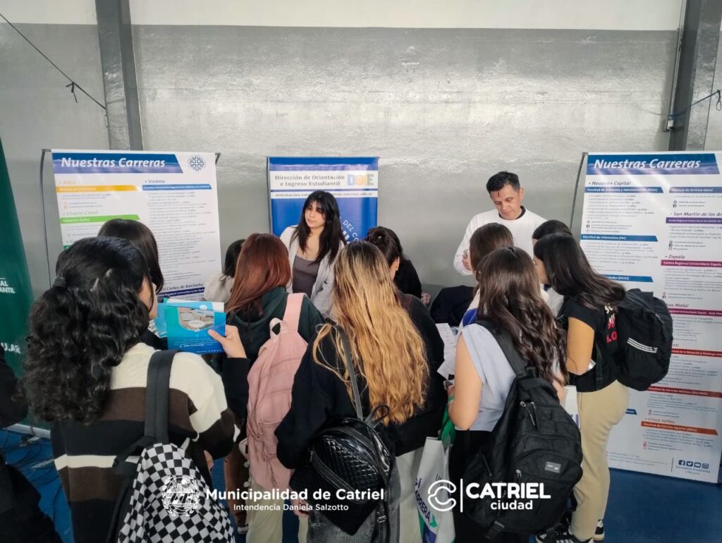 El jueves 28/8 se inauguró la segunda edición de la Expo Vocacional Catriel 2025, que se desarrolló durante dos días consecutivos en el Salón de Usos Múltiples “Eldo Carro” con la organización del Municipio de Catriel, en articulación, principalmente, con la Secretaría de Desarrollo y Panificación y el Punto Digital. La propuesta se extendió hasta el mediodía del viernes 29. Durante las jornadas se dio a conocer la oferta educativa superior para el ciclo 2026, a partir de la presencia de varios stands con toda la información de las distintas instituciones locales y foráneas, tanto de formación terciaria como universitaria.