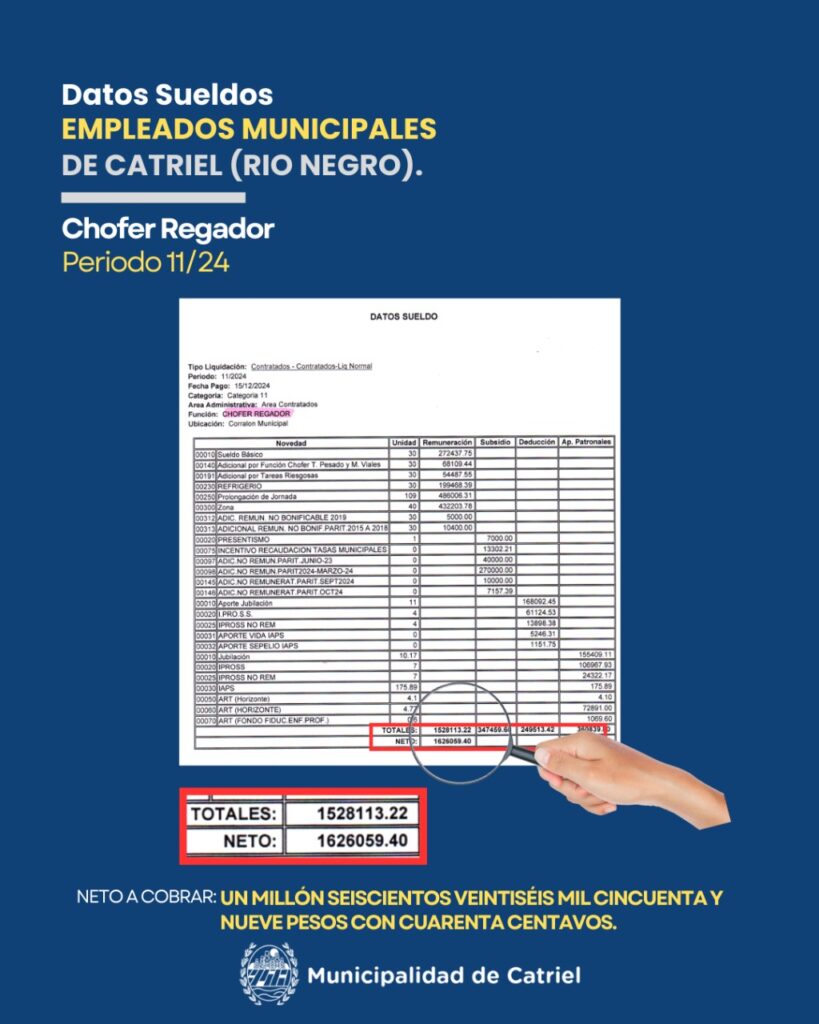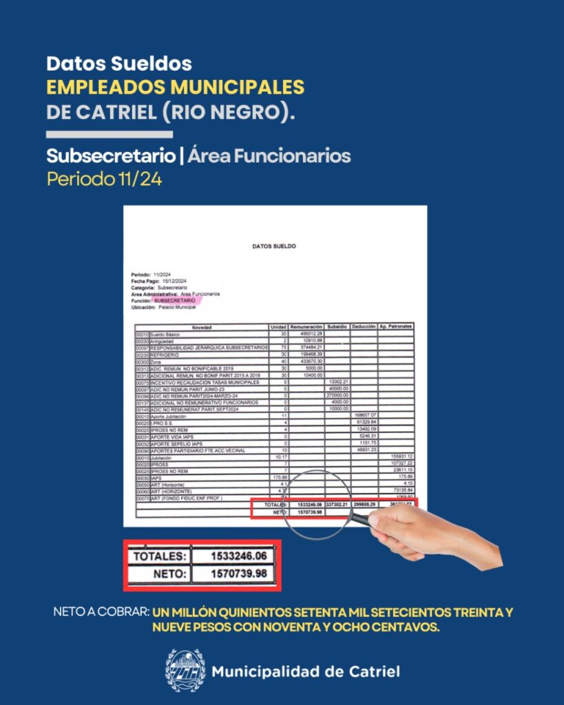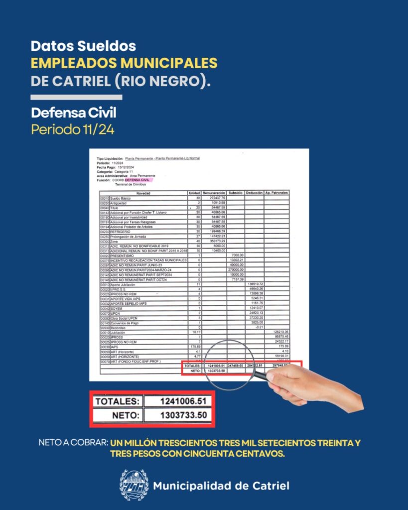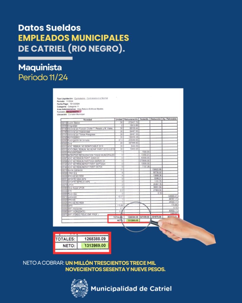 Tras cuatro días de toma del edificio municipal bajo bloqueo sindical, la Municipalidad de Catriel informa a la comunidad sobre la situación salarial de los empleados municipales, en un contexto donde los ingresos de estos se posicionan entre los más altos de la provincia de Río Negro.
