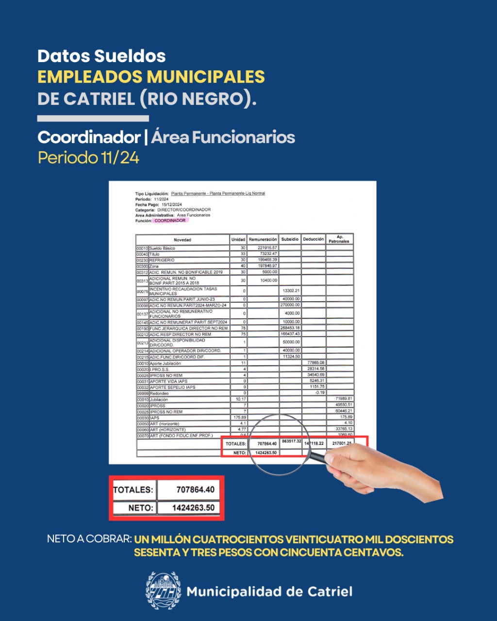 Tras cuatro días de toma del edificio municipal bajo bloqueo sindical, la Municipalidad de Catriel informa a la comunidad sobre la situación salarial de los empleados municipales, en un contexto donde los ingresos de estos se posicionan entre los más altos de la provincia de Río Negro.